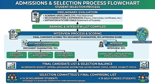 The selection process is conducted in two stages: primary assessment and interviews.